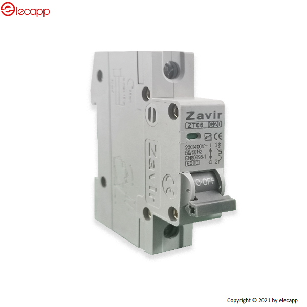 • کلید مینیاتوری تکفاز 20 آمپر زاویر